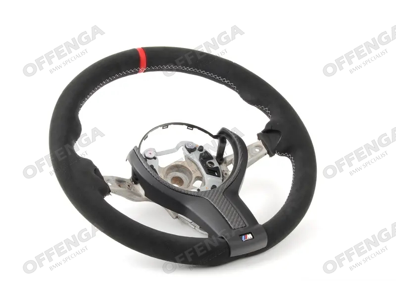 M Performance stuurwiel van onder andere de BMW 1-serie F20 en 3-serie F30. Dit originele BMW Performance stuur is bekleed met alcantara en heeft daarbij nog een rode 12-uur markering. Wordt compleet met de afdekking geleverd.