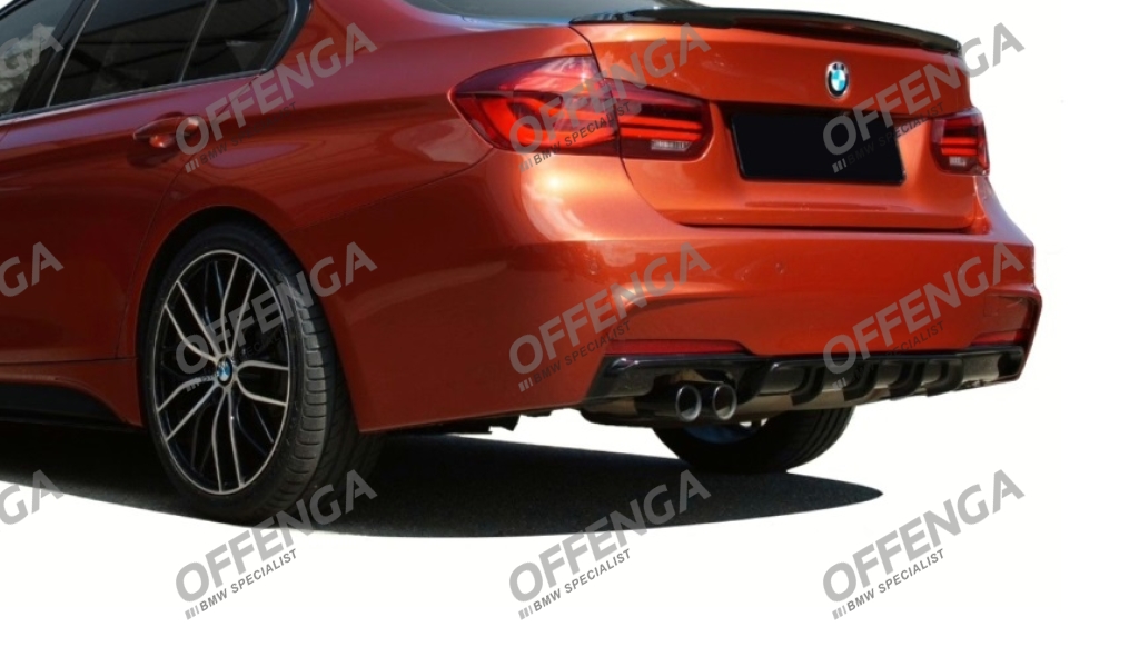 Achterdiffuser in het hoogglans zwart, toepasbaar op 3 serie F30/F31 modellen met M-bumper. Alleen voor modellen met dubbele uitlaat links. Met een kleine aanpassing is deze ook toepasbaar op modellen met afneembare trekhaak, op modellen met inklapbare trekhaak past deze zonder aanpassing.