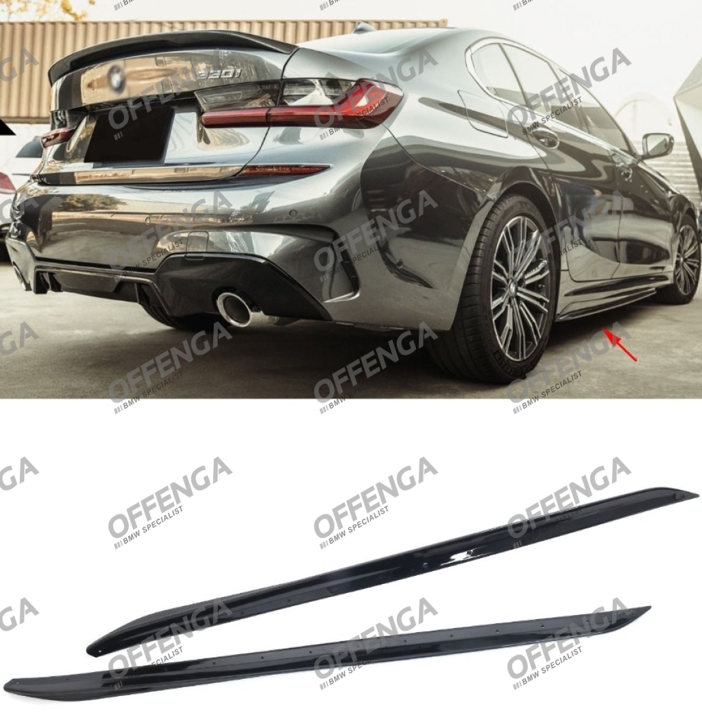 Set sideskirts in het hoogglans zwart. Toepasbaar op 3 serie G20/G21 modellen met M-sideskirts. Inclusief bevestigingsmateriaal.