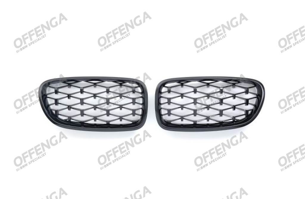 Grilledeelset in het hoogglans zwart met honingraat motief, toepasbaar op diverse BMW F10/F11 5-serie modellen. Hoogwaardige kwaliteit en perfecte pasvorm. Niet passend op modellen met Night Vision.