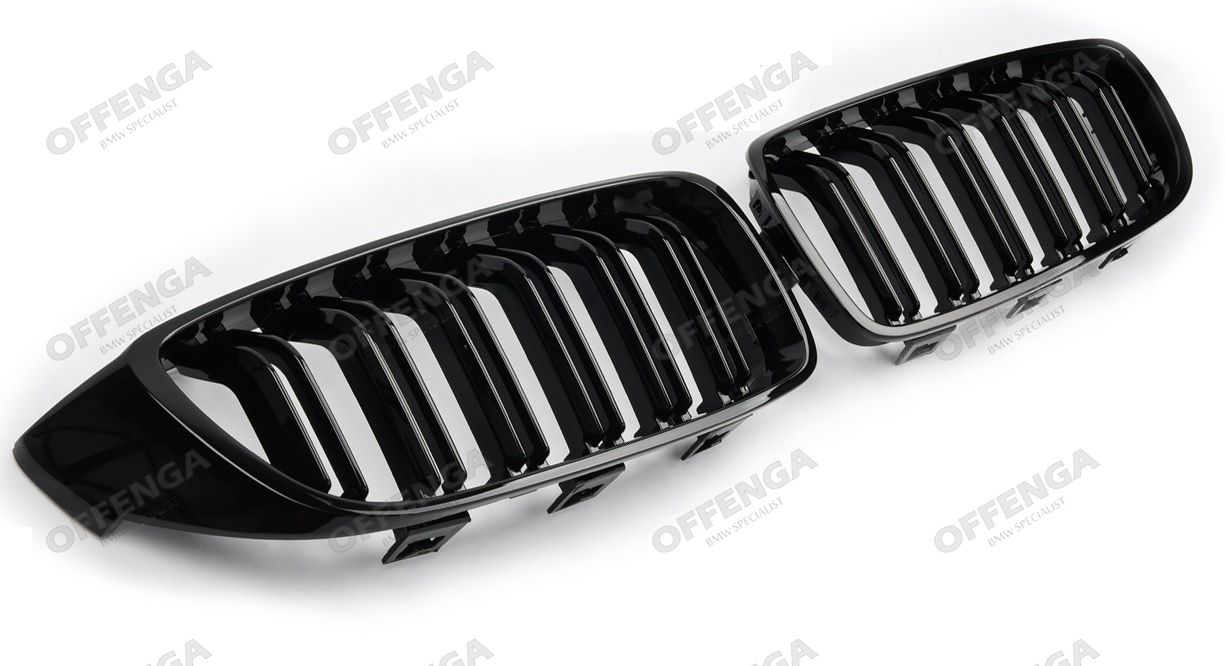 Grilledeelset in het hoogglans zwart en met dubbele spijlen voor diverse BMW F32/F33/F36 4-serie modellen. Ook passend op de M4 F82/F83 en M3 F80. Hoogwaardige kwaliteit en perfecte pasvorm.
