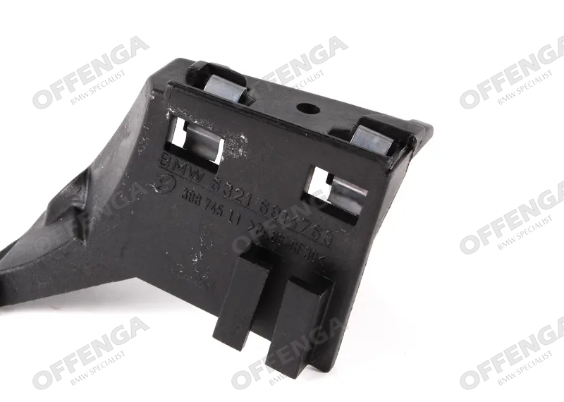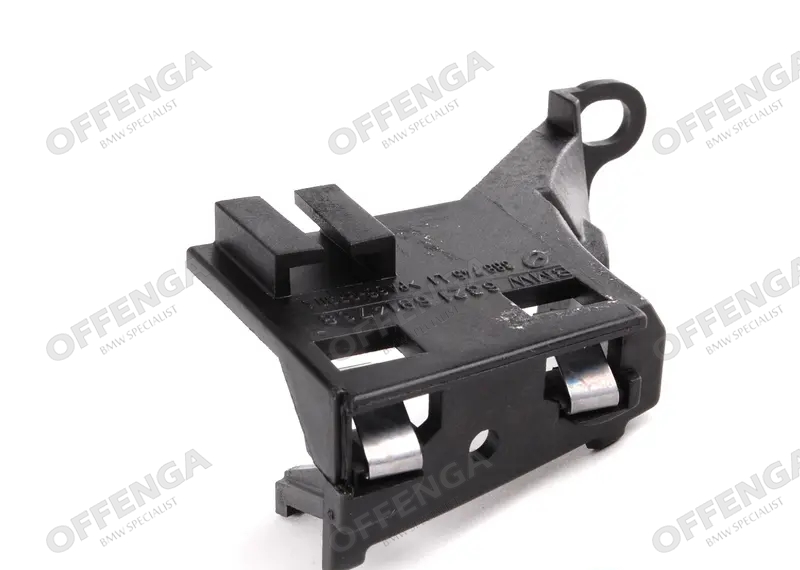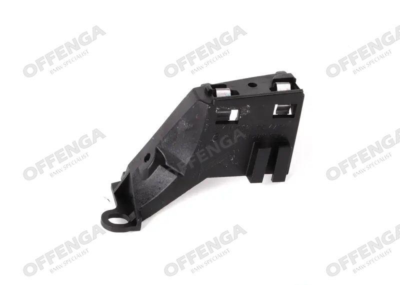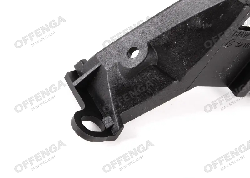 Steun van het knipperlicht en de koplamplijst in het voorscherm links van de BMW 3-serie E46 facelift modellen. Deze zit in de voorste hoek van het voorscherm gepopnageld. Als u uw voorscherm vervangt door een nieuwe zit dit deel er vaak niet in, hierdoor kan u de koplamplijst en het knipperlicht niet naar behoren monteren.