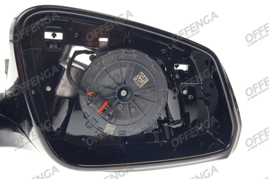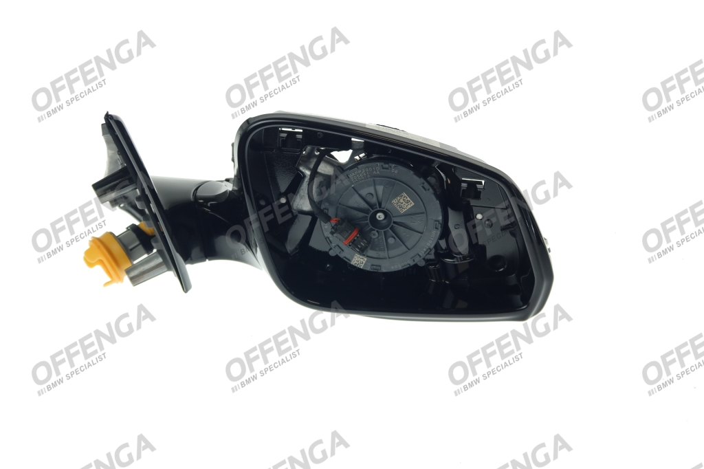 Buitenspiegel zonder glas verwarmd rechts van de BMW 5-serie F10 LCI en F11 LCI modellen. De spiegel is geschikt voor modellen met een automatisch dimmende buitenspiegel (0430), surround view (05DL) en Shadow Line (0760).