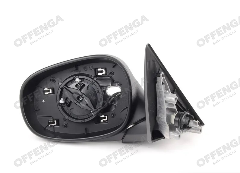 Buitenspiegel links (zonder glas) voor E90/E91 facelift modellen. Niet toepasbaar op modellen met optie S459A Stoelverstelling elektrisch met memory. Geschikt voor elektronische spiegelverstelling en spiegelverwarming.