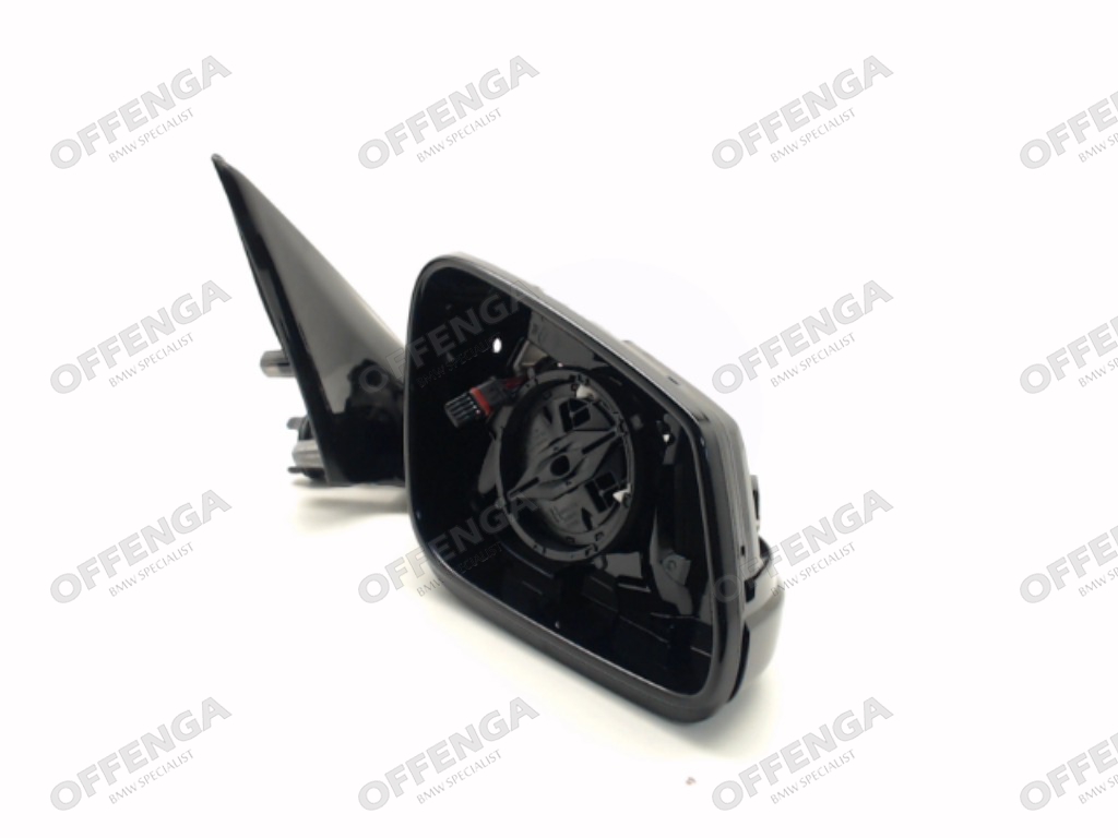 Buitenspiegel rechts voor de 7-serie F01 en F02 tot bouwjaar 07/2009. De spiegel is in het hoogglans zwart (S760A), voor de modellen met automatisch dimmende spiegels (S430A) en elektrische zitting met memory (S456A / S459A).