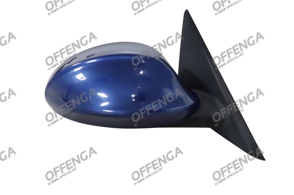 BMW Buitenspiegel rechts, voor de 3-serie E90 en E91 modellen met automatische dimmende spiegels. De spiegel is handmatig inklapbaar en is compleet met spiegelkap(deze bevat een krasje en wat kleine plekjes).
