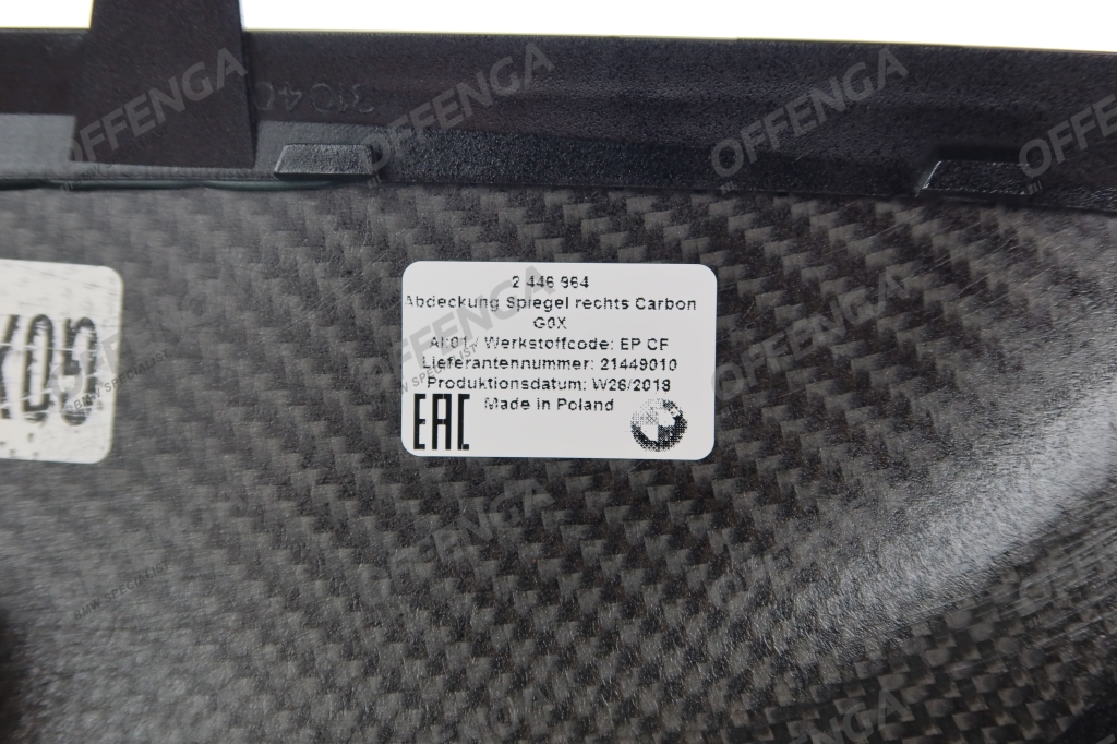 BMW M Performance carbon spiegelkap rechts voor de BMW G01 X3, G02 X4, G05 X5, G06 X6 en G07 X7 modellen. Dit betreft een origineel BMW M Performance carbon onderdeel.