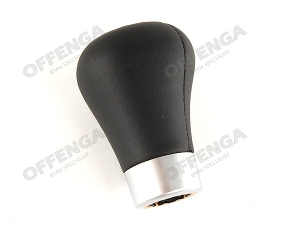 M-techniek pookknop in zwart leder met metalen ring onderaan. (kort model).