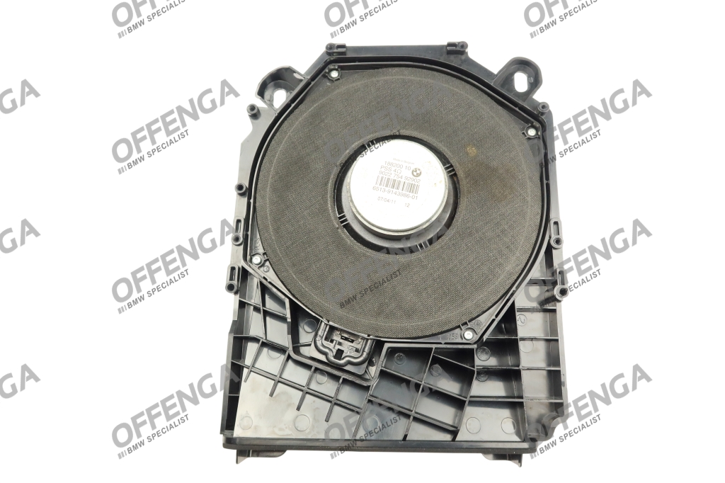 BMW Subwoofer rechts onder de stoel van het HiFi-systeem voor de 1-serie E81, E82, E87 en E88 en de 3-serie E90, E91, E92 en E93.