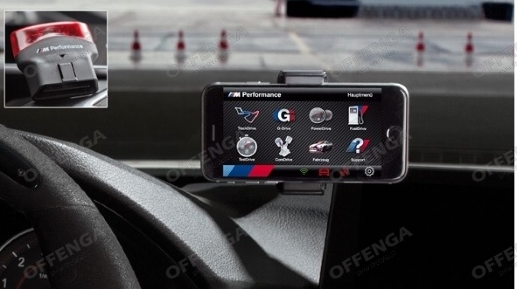 BMW M Performance Drive Analyser, voor het nauwkeurig analyseren van uw rijstijl. Deze set bestaat uit een OBD stick die in de auto wordt aangesloten, en software in de vorm van een app voor op uw smartphone of tablet. De verbinding gaat via Bluetooth. Hiermee kunnen onder andere remafstanden en motorgegevens geanalyseerd worden.