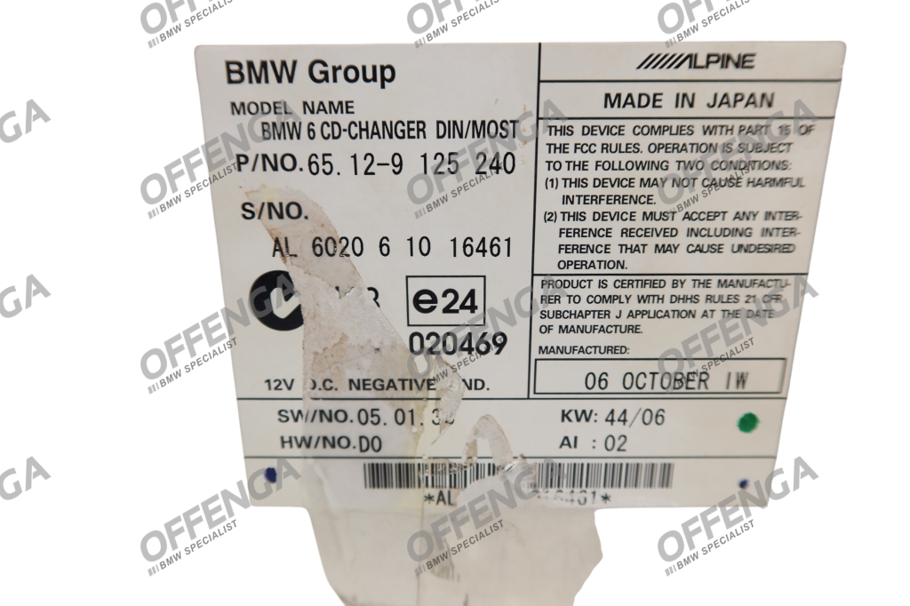 Alpine originele 6-CD wisselaar inclusief magazijn, voor de 5-serie E60 en E61 en de 6-serie E63 en E64 (LCI)