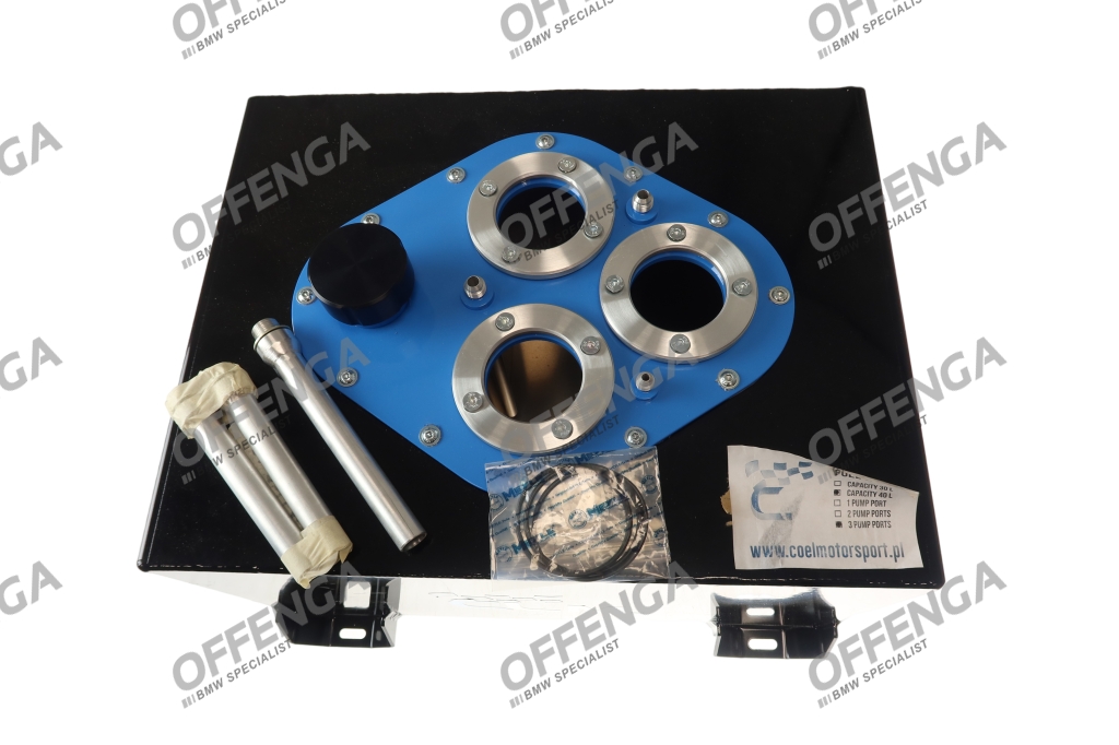 40 liter brandstoftank voor diverse race auto's (autocross) met 3 pomp aansluitingen van het merk Coel Motorsport.