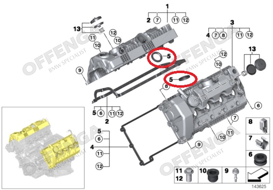 Afdichtring t.b.v. valvetronic motor op klepdeksel.