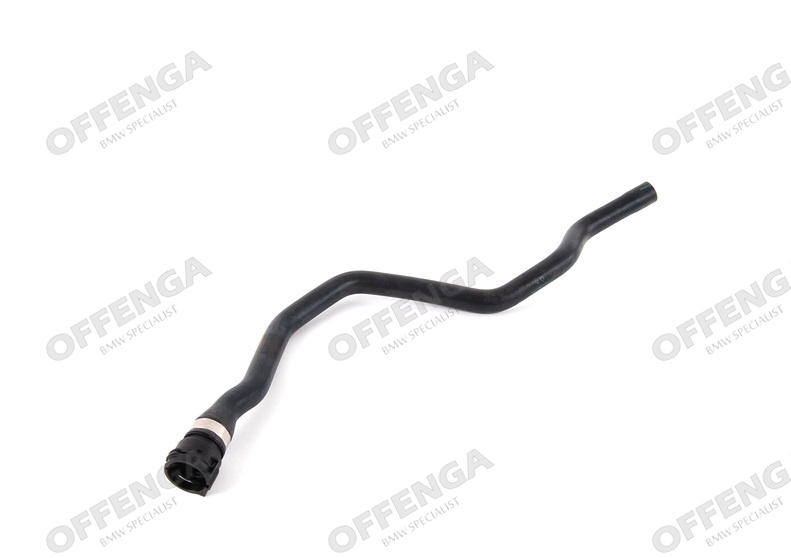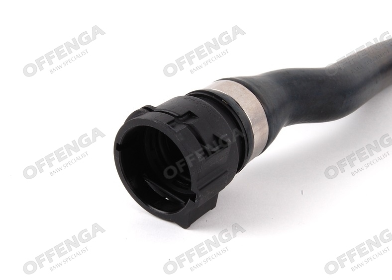 Slang loopt van flens op de zijkant van het blok naar de kachelkraan