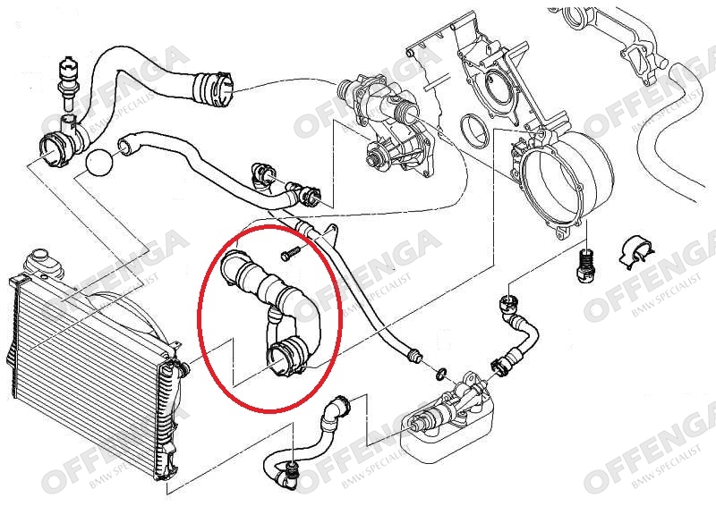 Waterslang FEBI voor BMW E38 en E39 V8 vanaf 1/9/1998.