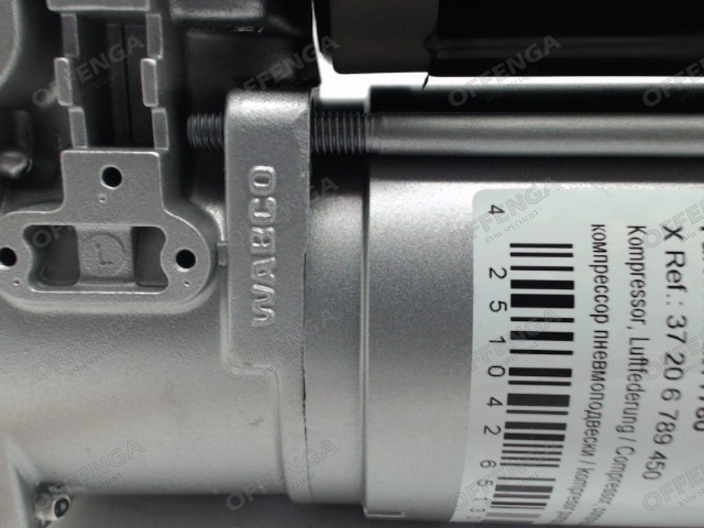 WABCO compressor voor de niveauregeling van BMW F07 en F11 modellen. Inclusief relais, zonder bevestigingsbeugel en -materiaal.