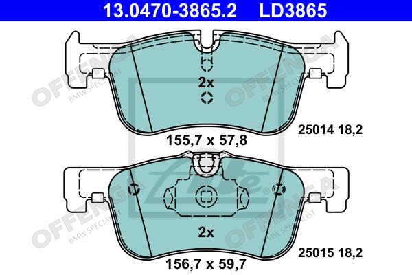 ATE Remblokken voorzijde keramisch voor diverse BMW modellen.