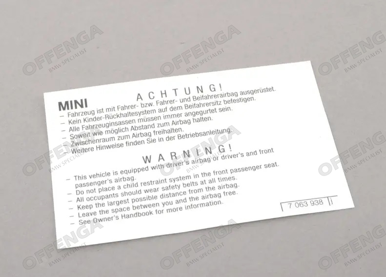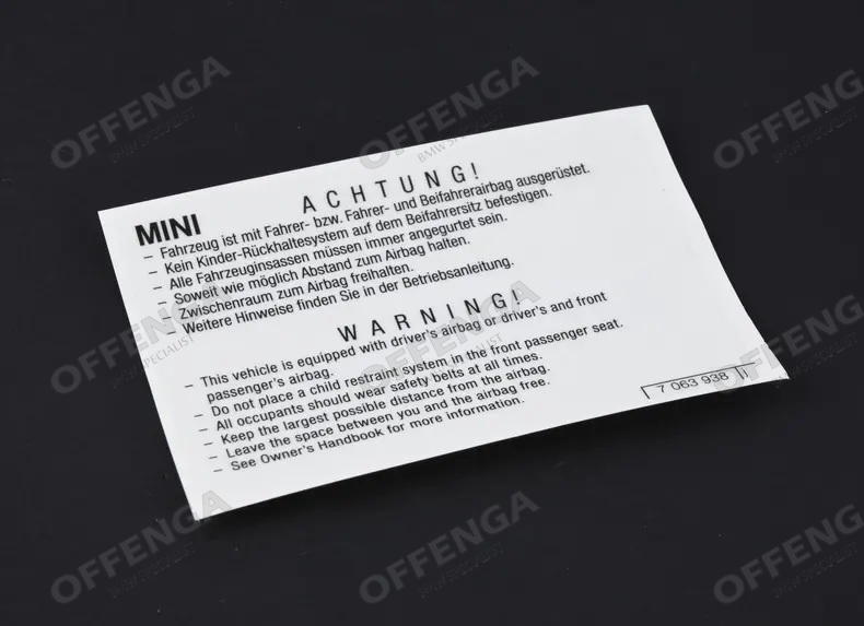 Waarschuwingssticker Airbag diverse MINI modellen.