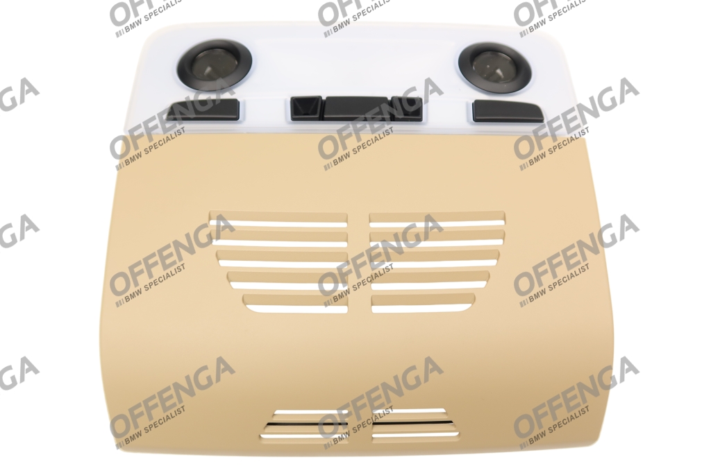 BMW Binnenverlichting achter voor de 1-serie E82 en de 3-serie E90, E91 en E92. De verlichting is met een savannabeige kap, voor de modellen met alarmsysteem (S302A).