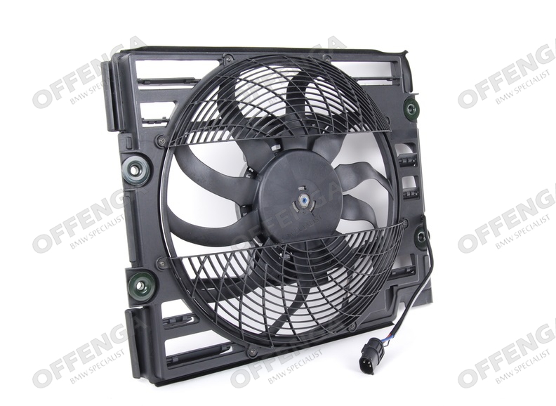 Elektrische Airco-ventilator E39 vanaf 10/97. 3-polige stekker. Zit voor de condensor in het front.