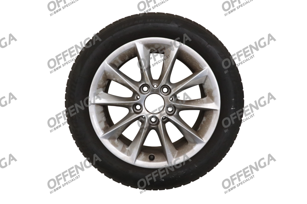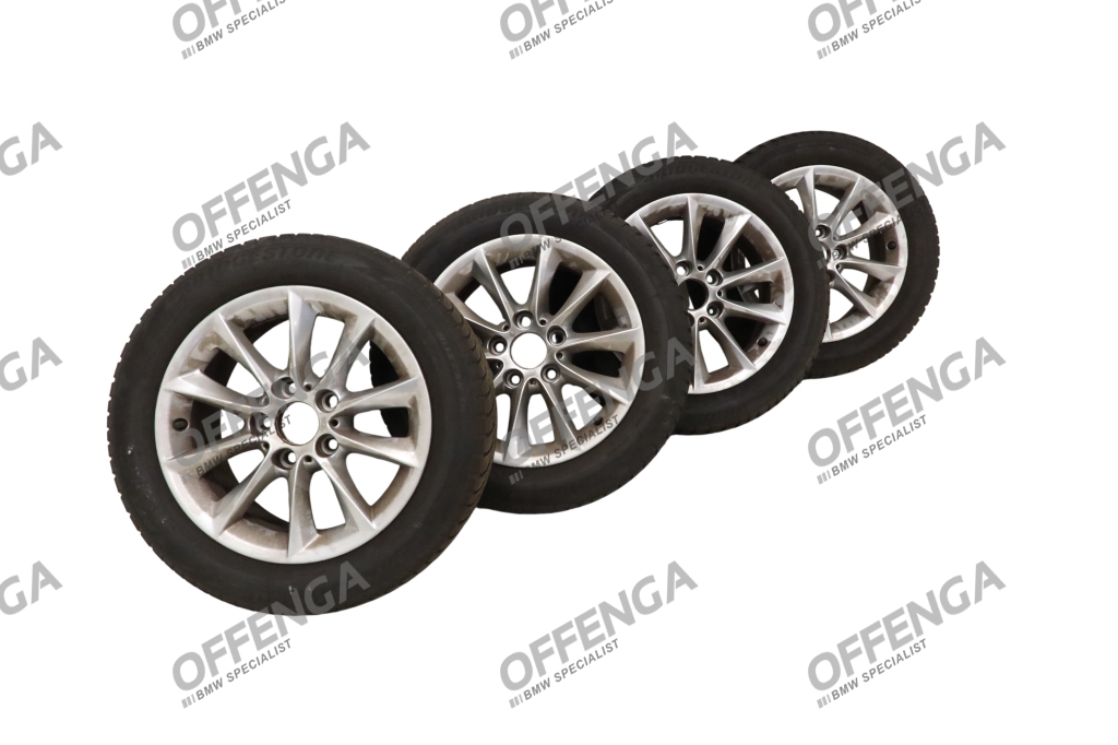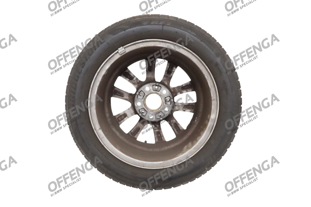 Om de velg zit een Bridgestone Blizzak LM001 RFT met de bandenmaat 205/55R16 91H. 2 banden zijn van 2021 en hebben een profieldiepte van ruim 6mm, de andere 2 zijn van het jaar 2018 en hebben 4mm profieldiepte (te weinig profiel om als winterband te gebruiken.)